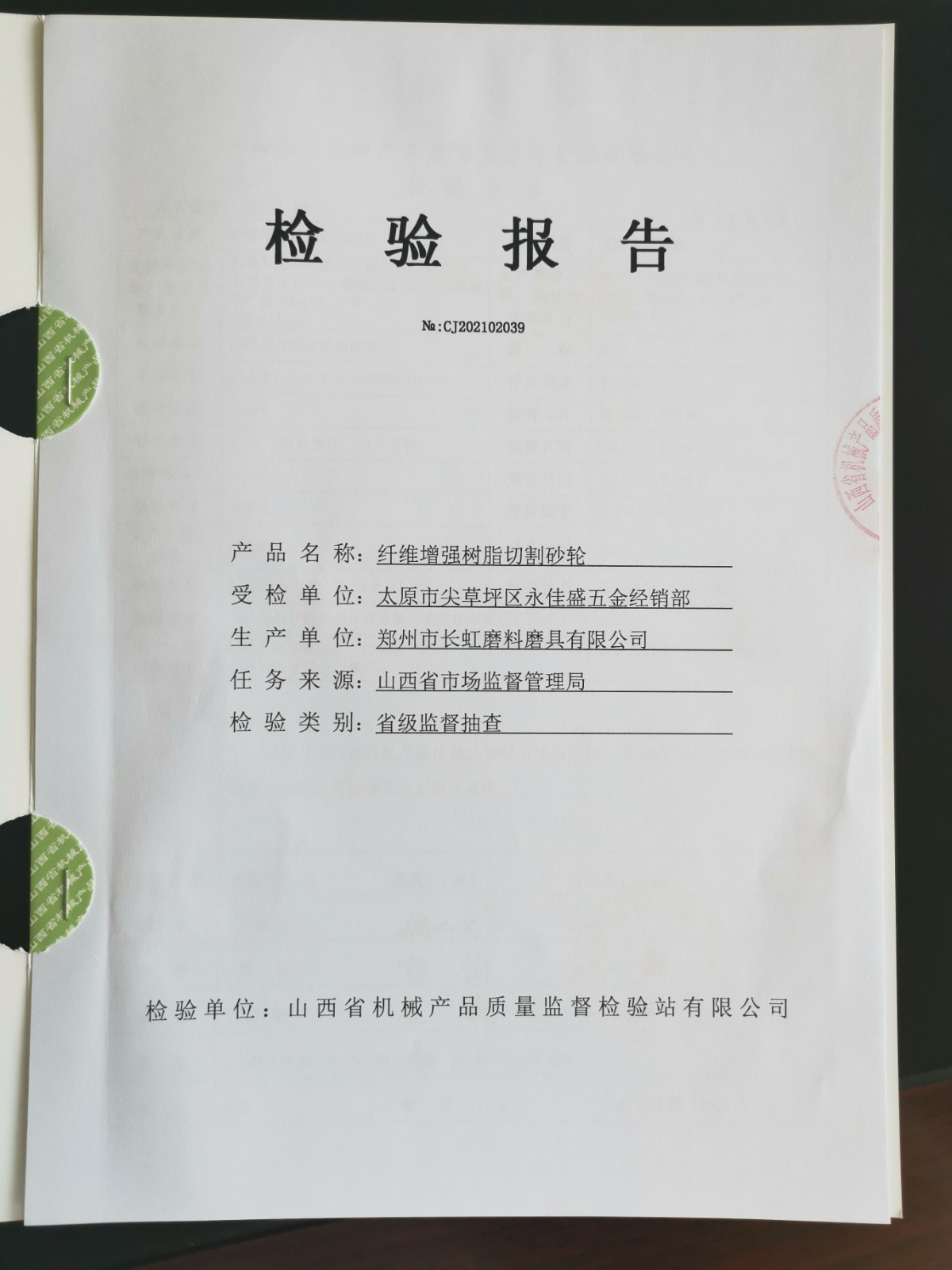 當前位置:主頁 > 新聞中心 公司產品在山西省市場監(jiān)督管理局抽檢中檢驗合格發(fā)布時間:2021/9/24 發(fā)布人:長虹磨料 瀏覽:3153次 2021年7月,山西省市場監(jiān)督管理局對市場在售砂輪產品現(xiàn)場抽檢,我公司400*3.2*32、350*2.6*25.4產品在太原市尖草坪永佳盛五金經(jīng)銷部現(xiàn)場取樣抽檢,依據(jù)《山西省砂輪產品質量監(jiān)督抽查實施細則》及JB/T4175-2016標準,所抽檢樣品檢驗合格。